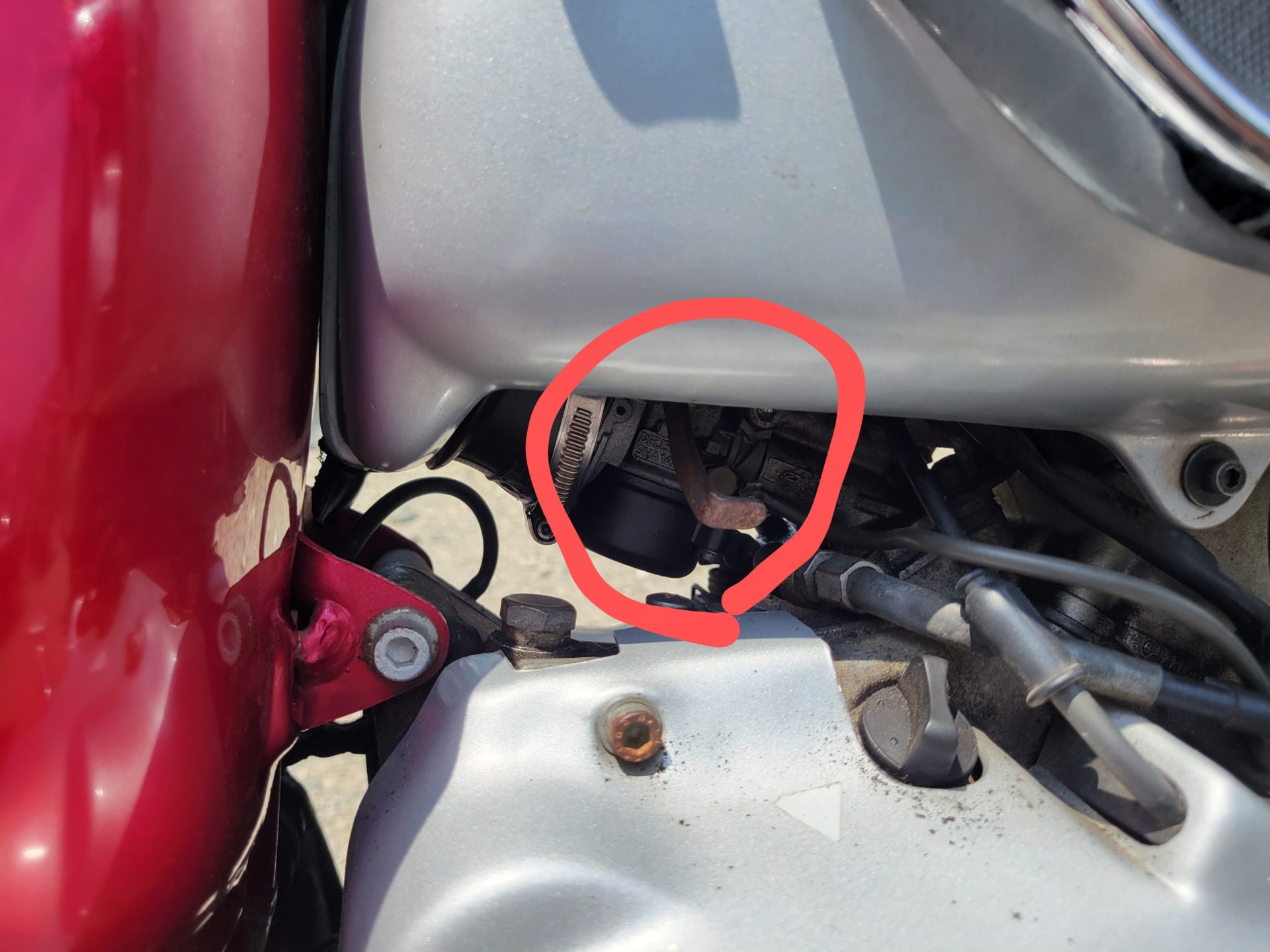 先ずエンジンが掛かりにくい時にやるのが赤い丸の中にあるチョークを開けますよね。