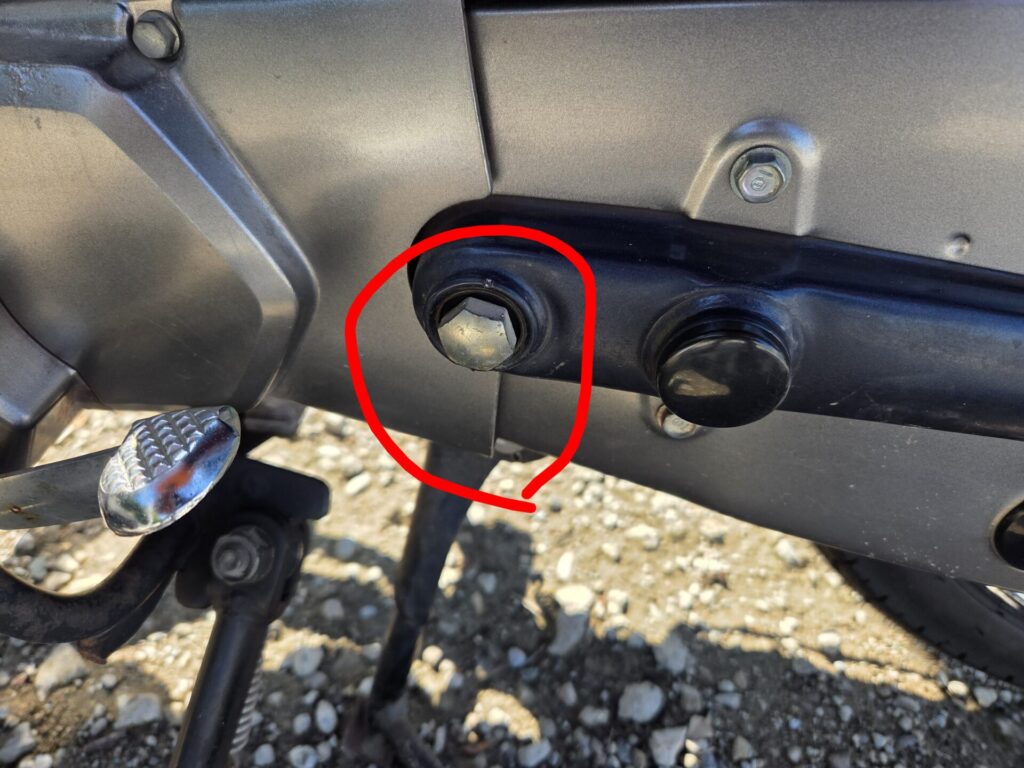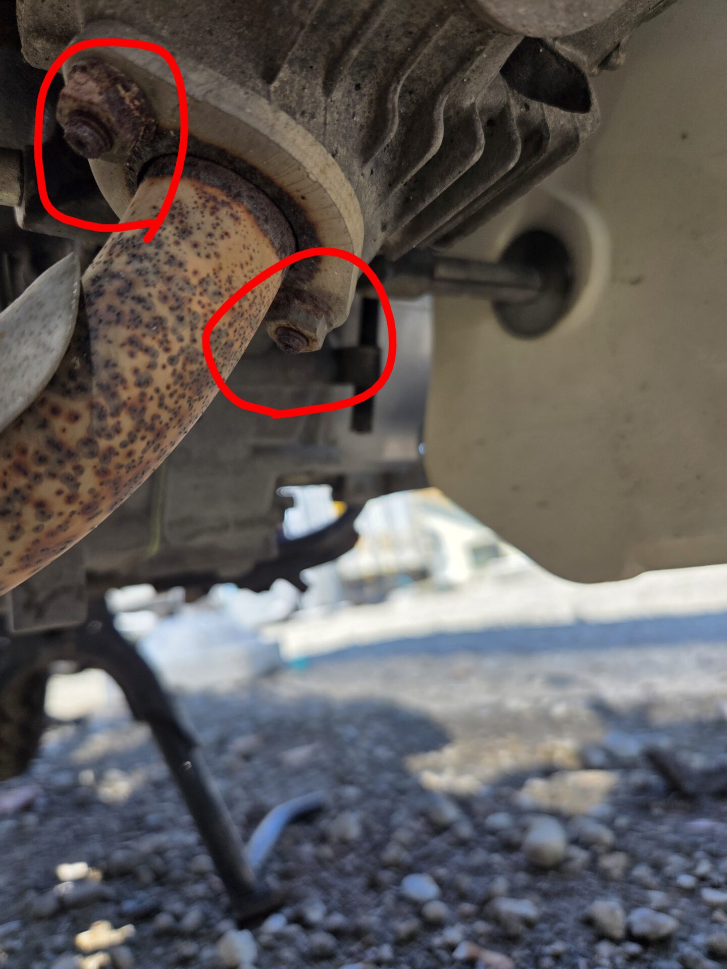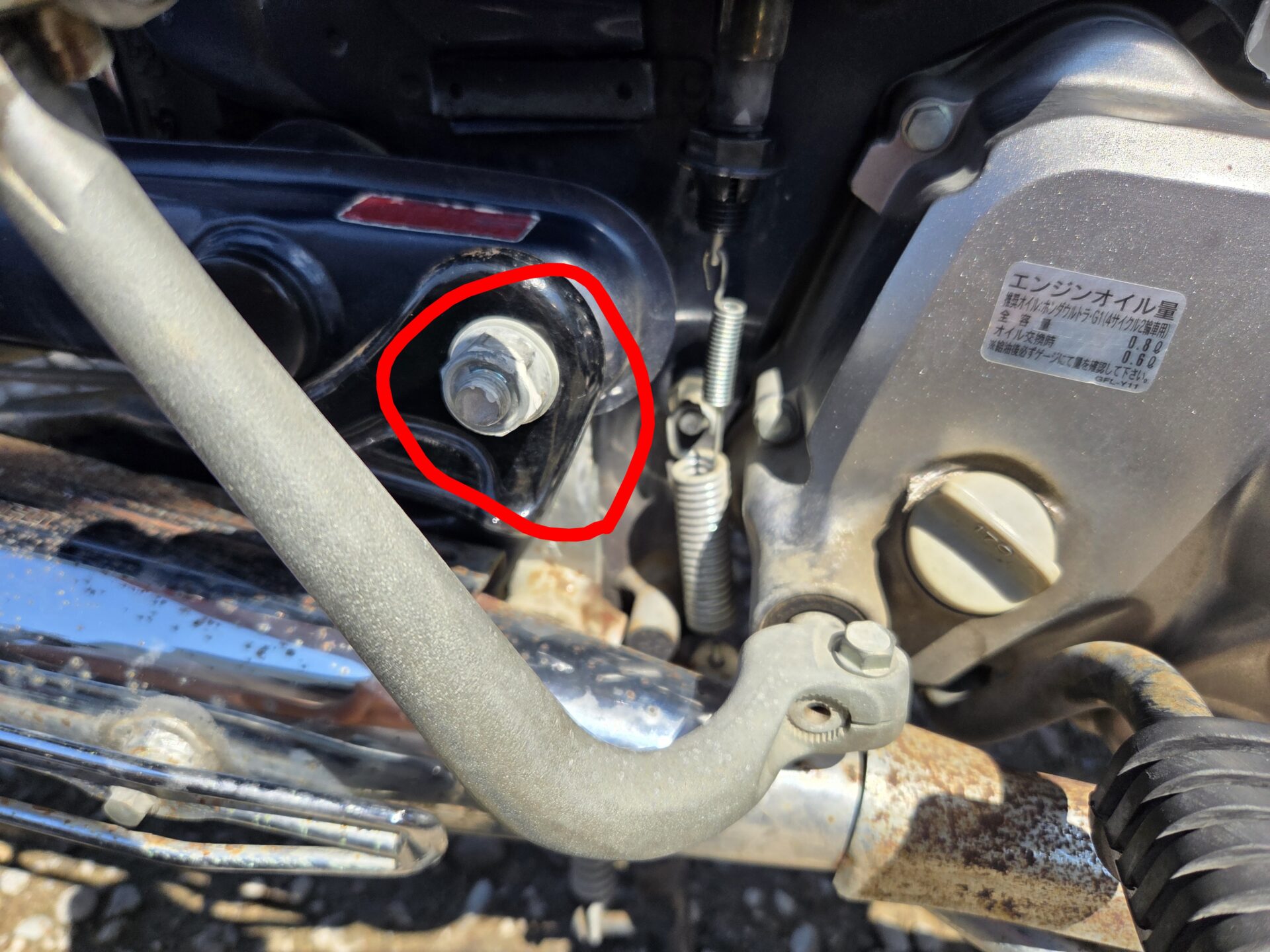 マフラーの付け根にある10ミリナットを外します。