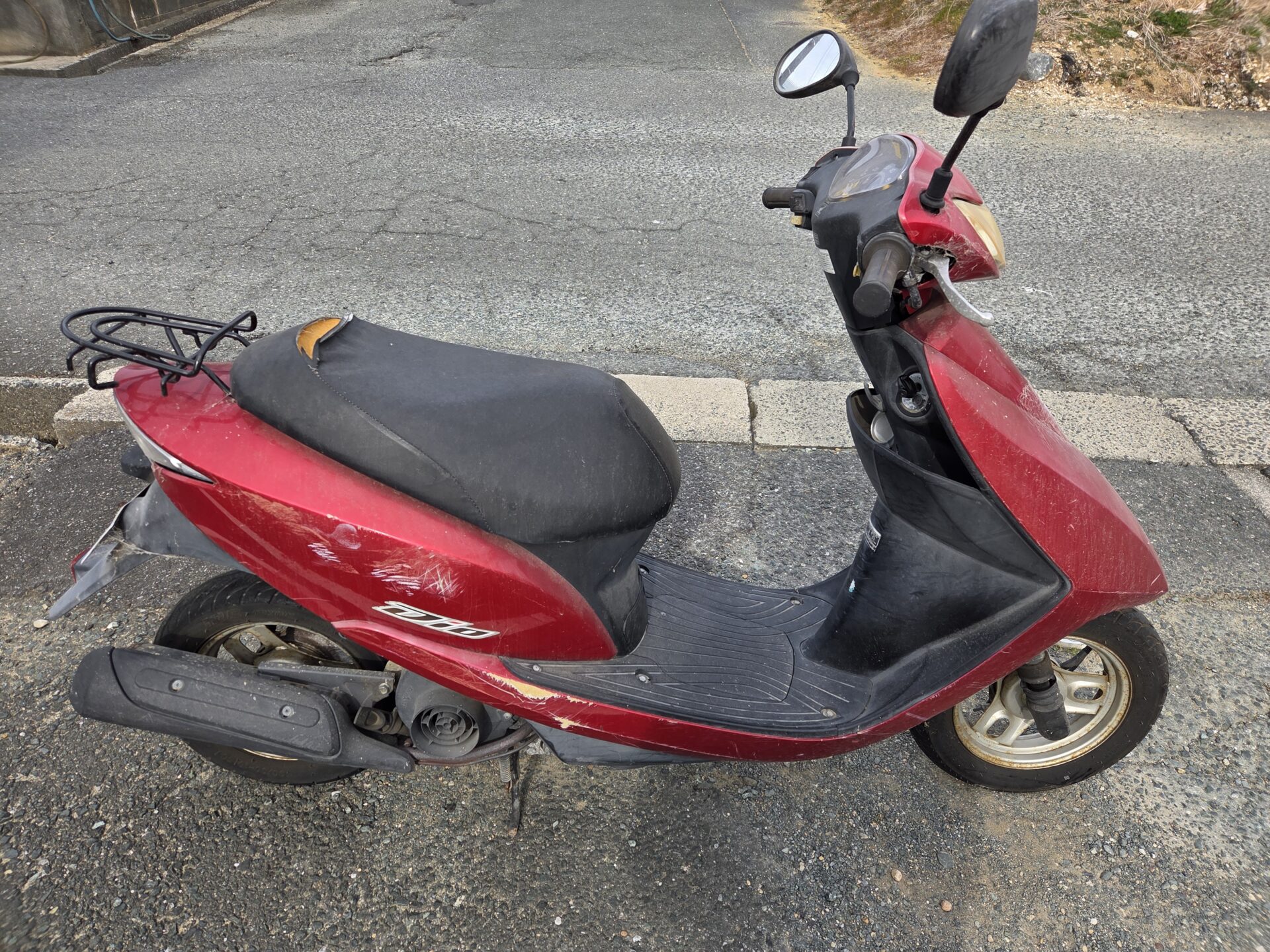 色剥げ放置原付1種スクーター(ディオFIインジェクションタイプ)は、2年前まで乗っていたけどクルマが手に入ったから乗らなくなったそうです