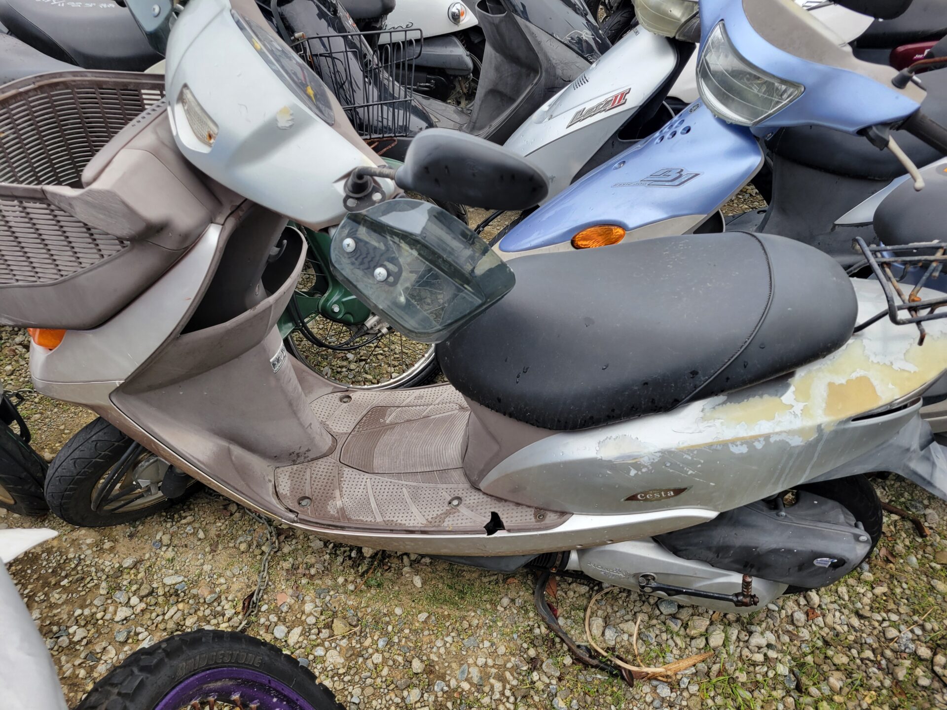 そして、外装剥げ実働バイク(原付1種スクーター)の車種は、HONDAのAF62型、ディオチェスタ50キャブレタータイプ、4ストロークタイプ、4421キロの原付1種スクーターです。