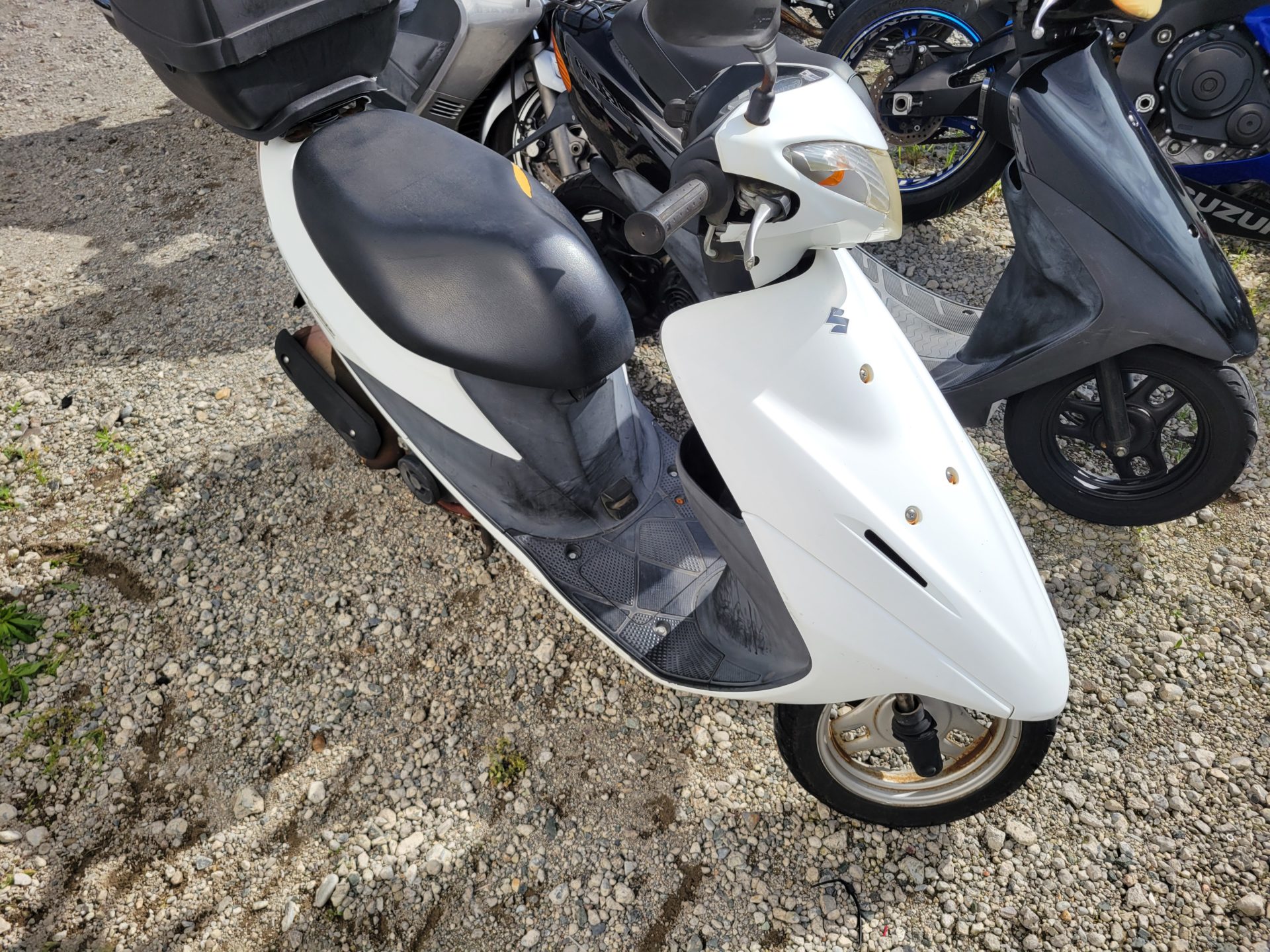 そして、バッテリー上がり放置バイク(原付1種スクーター)の車種は、SUZUKIのCA42A型、アドレスV50インジェクションタイプ、4ストロークタイプ、3360キロです。