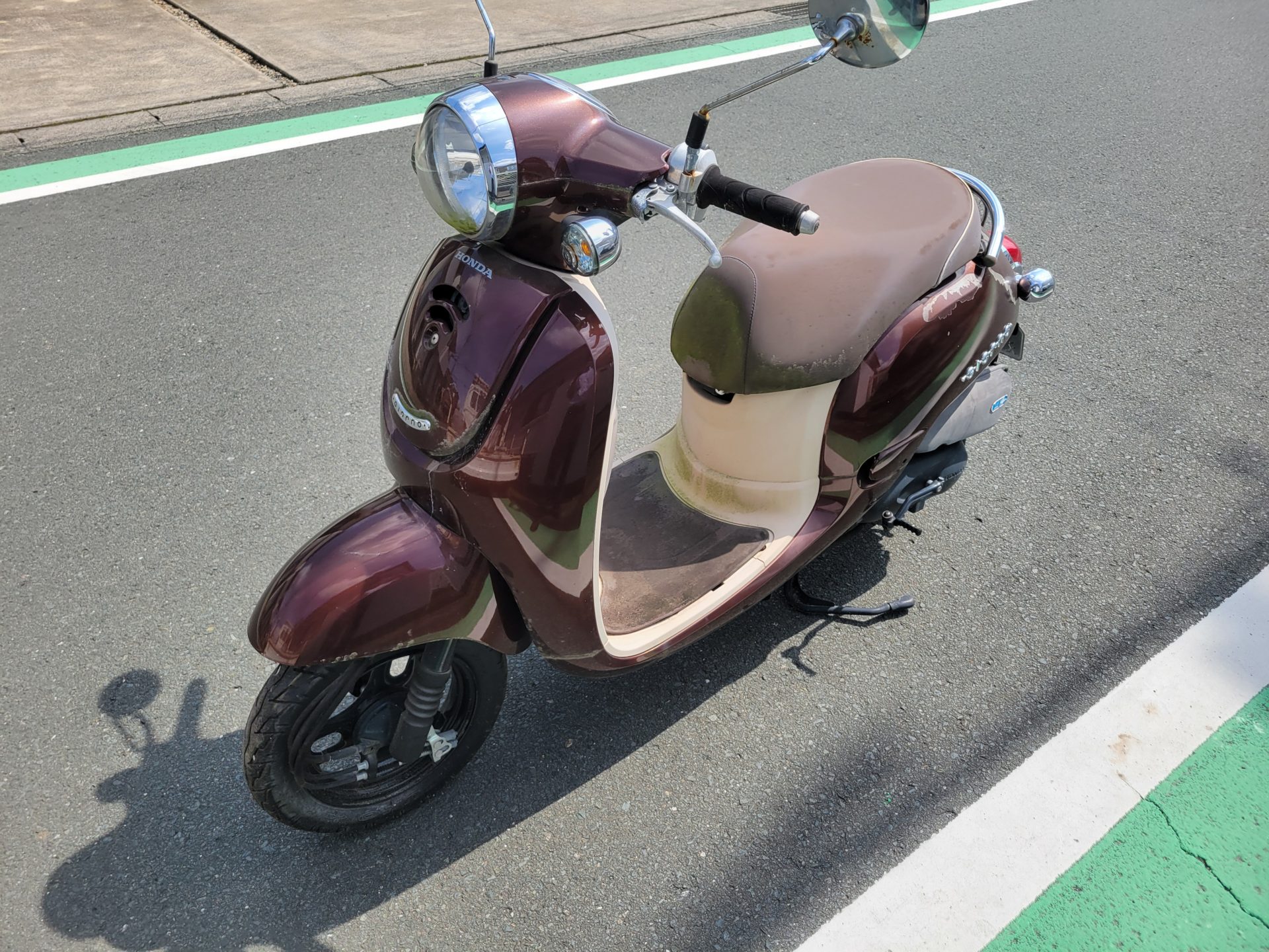 全く乗ってないのにこんなに汚くなるんだから変な原付1種スクーターになりました。